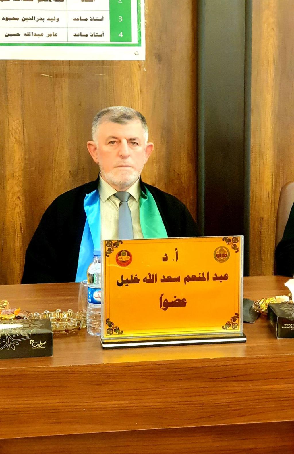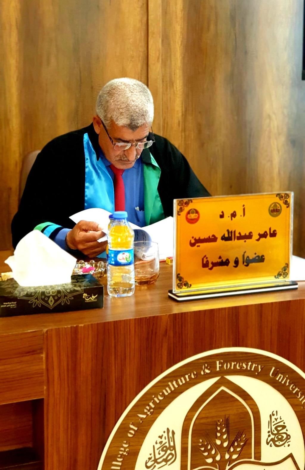 - Dr. Amer Abdullah Hussein … (Member and supervisor).Then the discussion committee read the decision, which included acceptance of the thesis and awarded the student an M.Sc. degree.*****Congratulations on Obtaining Your Master’s Degree*****