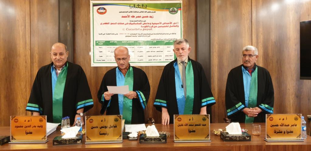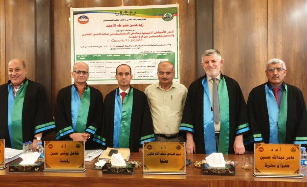 A master’s thesis was discussed in the Department of Horticulture and Landscape Architectures / College of Agriculture and Forestry / University of Mosul for the student (Zaid Hassan Omar) on Wednesday, 10-August -2022.The discussion committee consisted of: