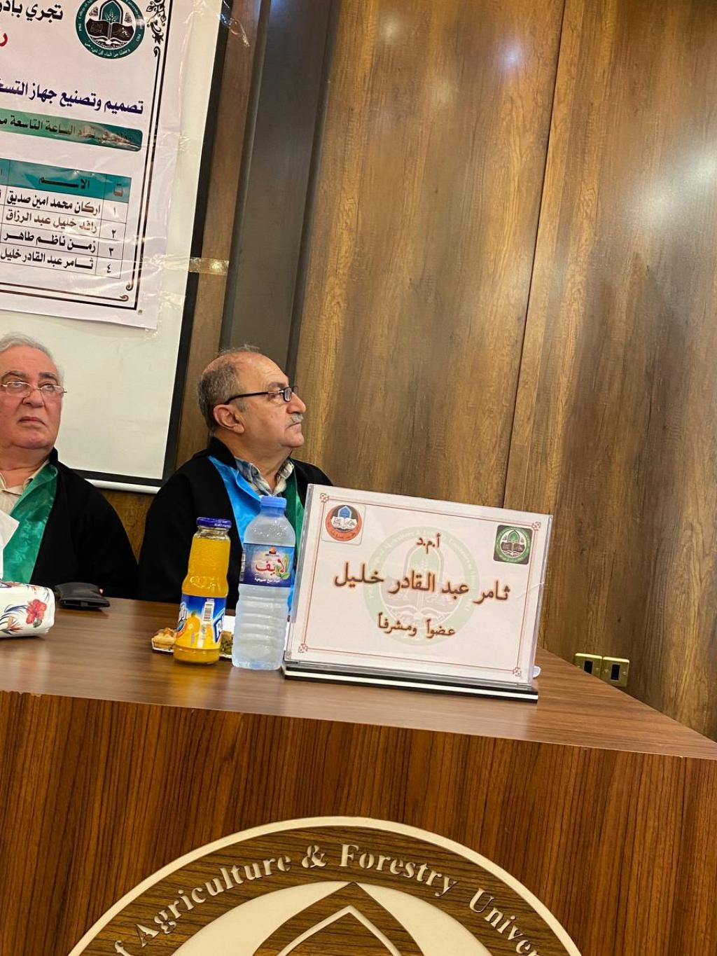 - Dr. Thamer Abdul Qader Khalil … (Member and supervisor).Then the discussion committee read the decision, which included acceptance of the thesis and awarded the student an M.Sc. degree.*****Congratulations on Obtaining Your Master’s Degree*****