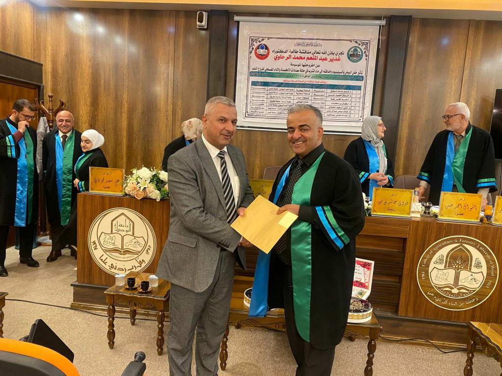 A Ph.D. thesis was discussed in the Department of Animal Production / College of Agriculture and Forestry / University of Mosul for the student (Ghadeer Abdel Moneim Muhammad Al-Rahawi) on Monday, 5/September/2022. Prof. Dr. Muhammad Younis Al-Allaf (Dean of the College) attended part of the discussion.The discussion committee consisted of: