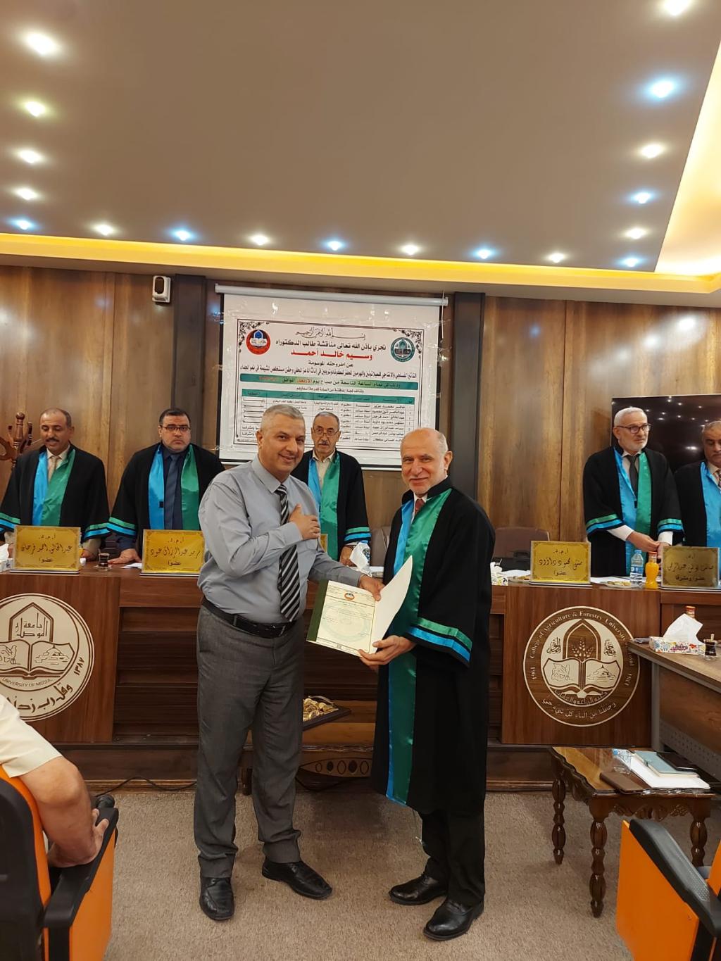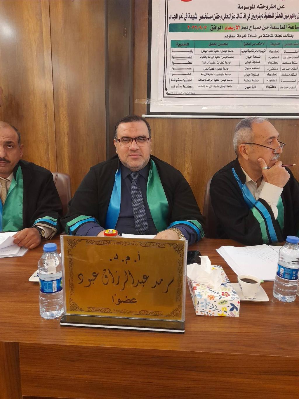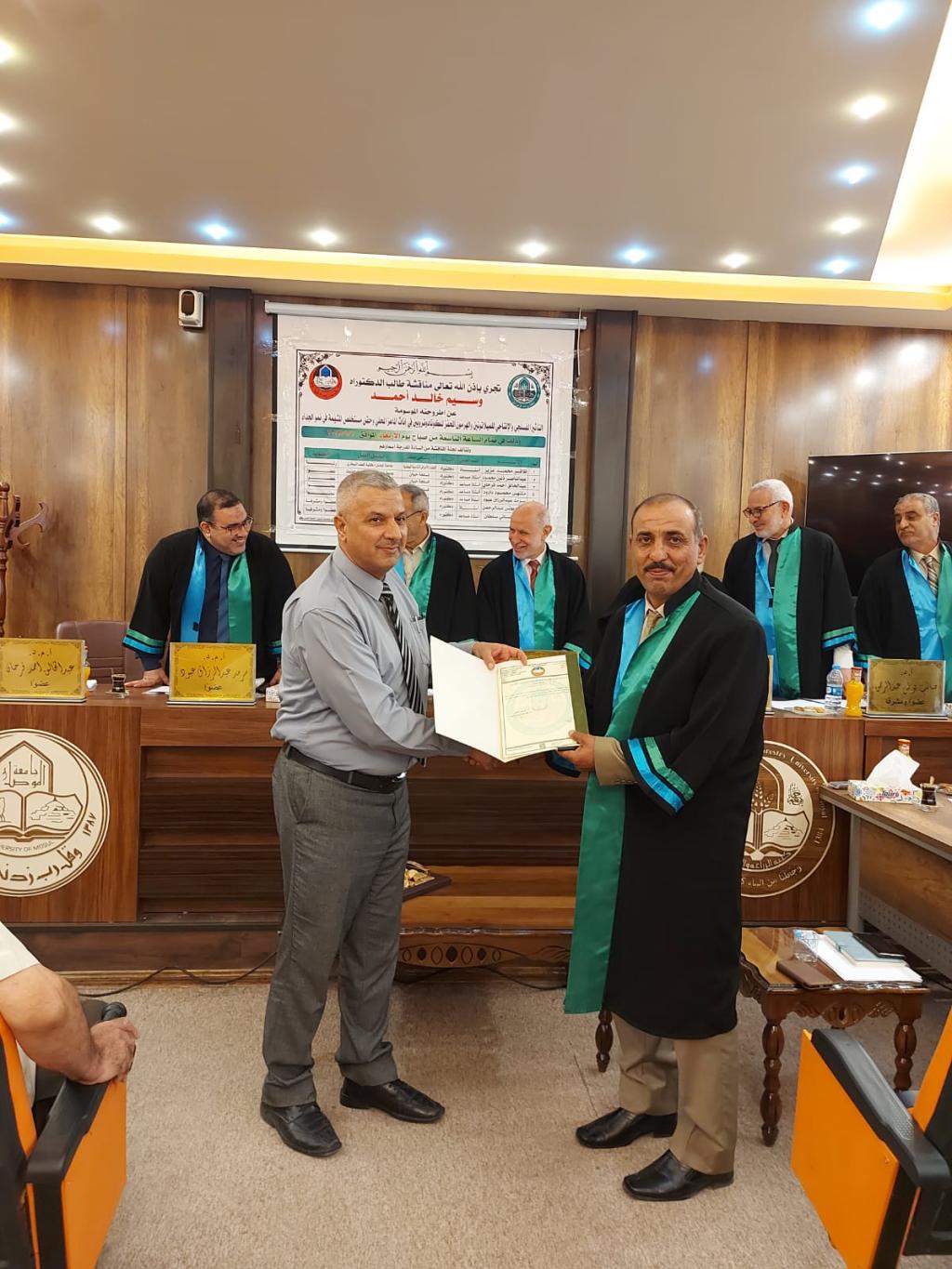 - Dr. Khaled Hassani Sultan …. (Member and supervisor).Then the discussion committee read the decision, which included accepting the thesis and awarding the student a Ph.D. degree.*****Congratulations *****