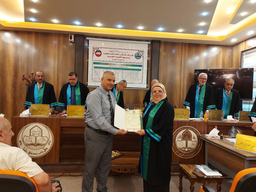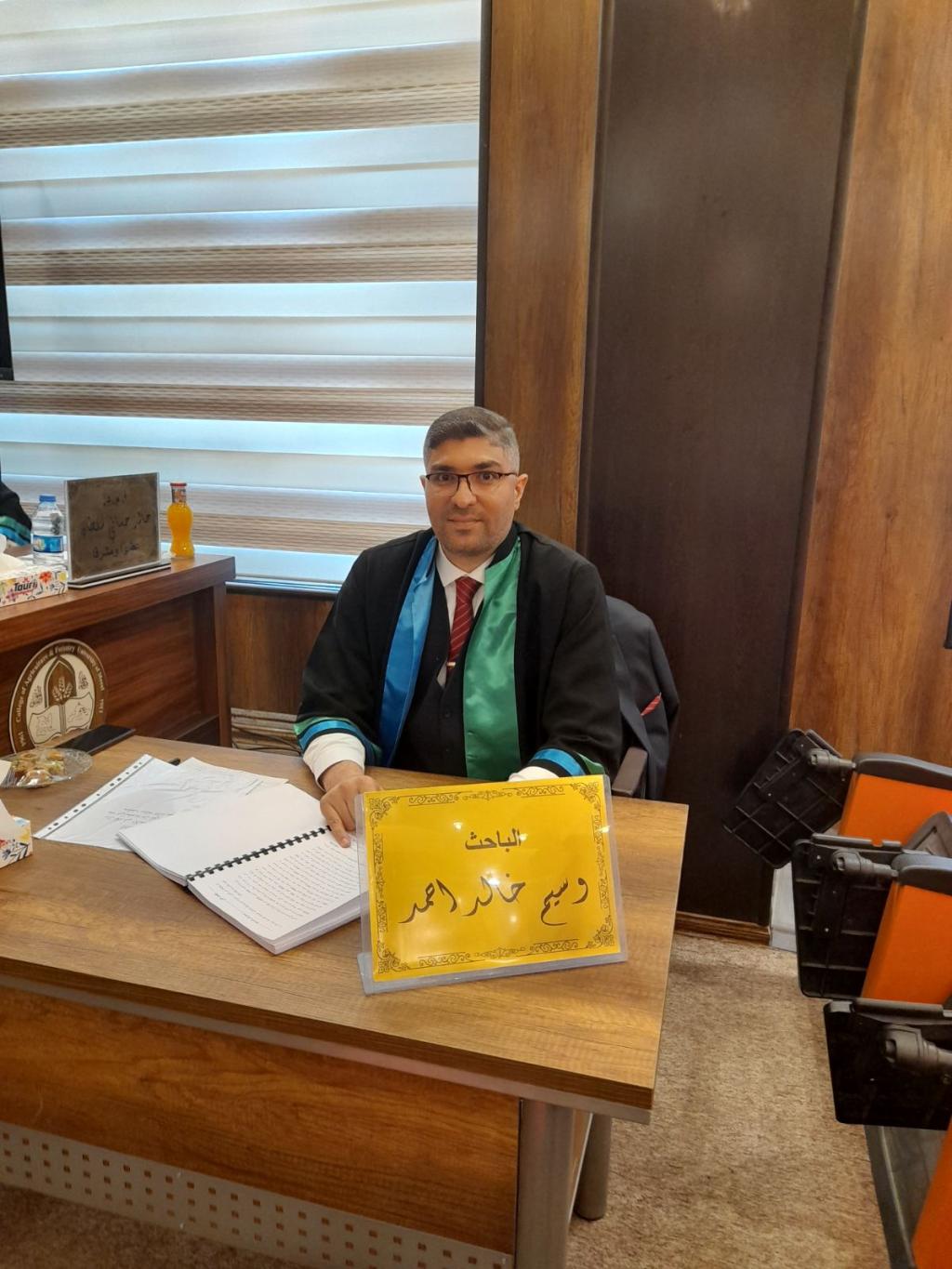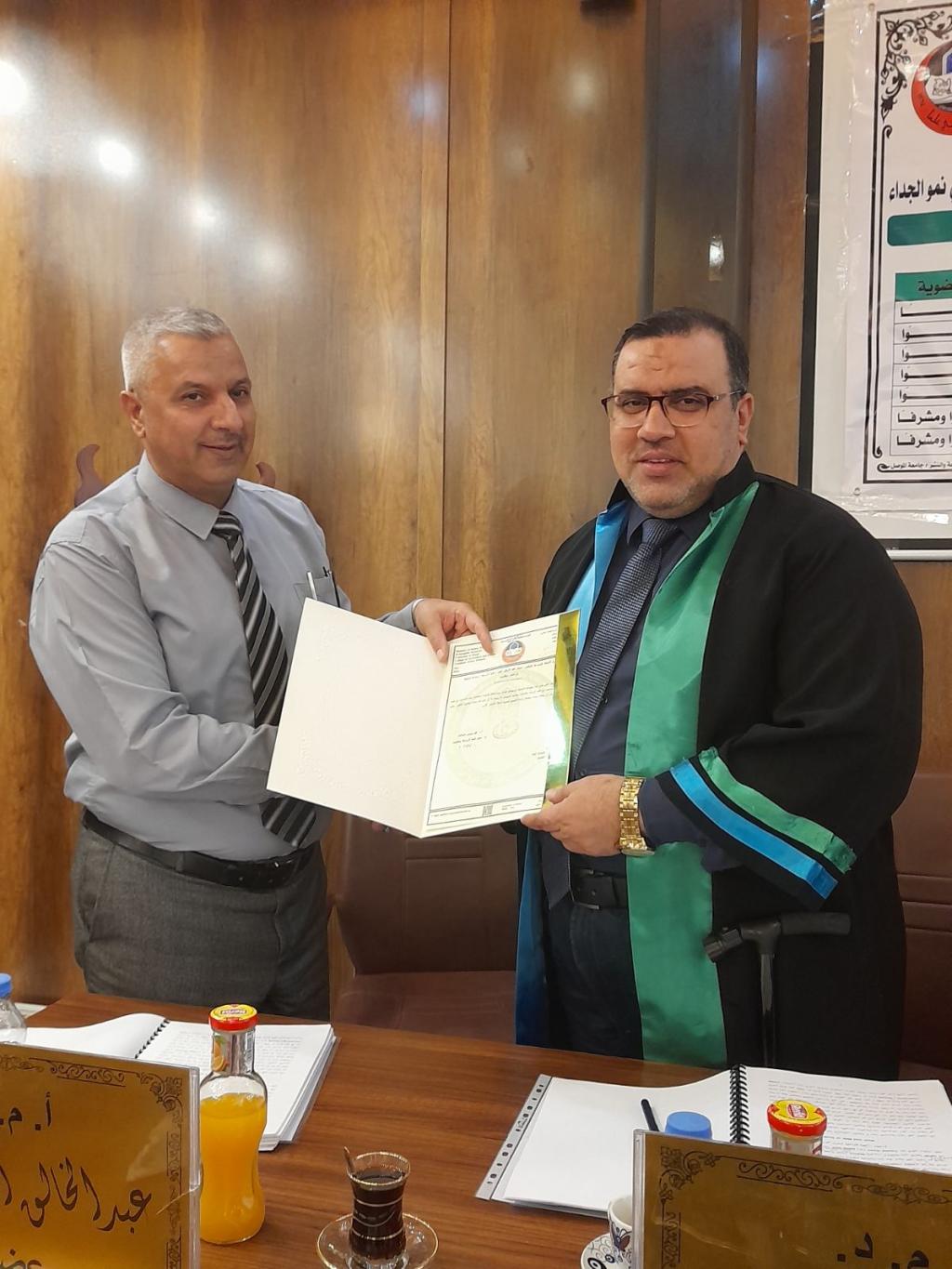 - Dr. Khaled Hassani Sultan …. (Member and supervisor).Then the discussion committee read the decision, which included accepting the thesis and awarding the student a Ph.D. degree.*****Congratulations *****