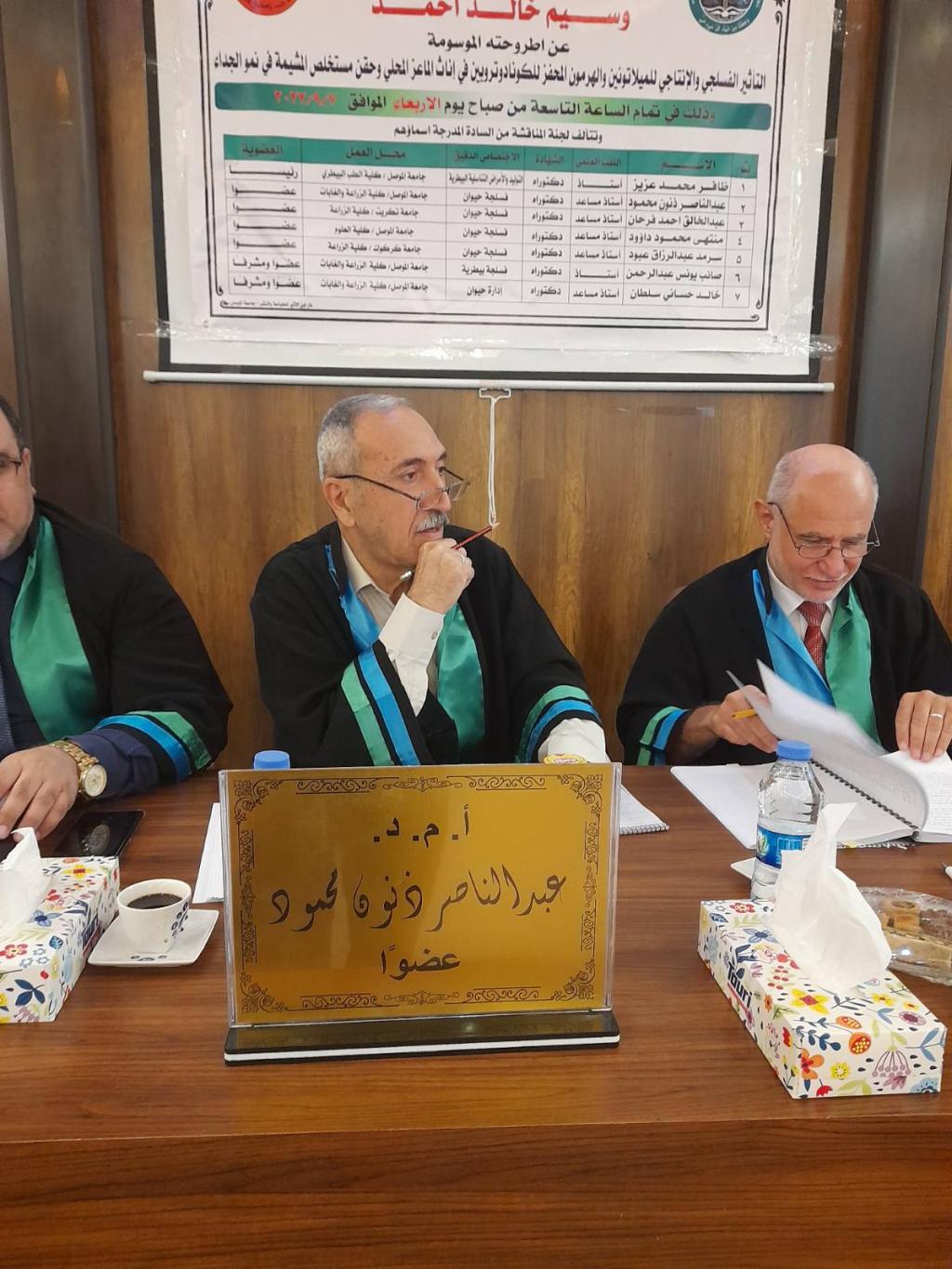 A Ph.D. thesis was discussed in the Department of Animal Production / College of Agriculture and Forestry / University of Mosul for the student (Waseem Khaled Ahmed) on Wednesday, 7th September/2022. Prof. Dr. Muhammad Younis Al-Allaf (Dean of the College) attended part of the discussion.The discussion committee consisted of: