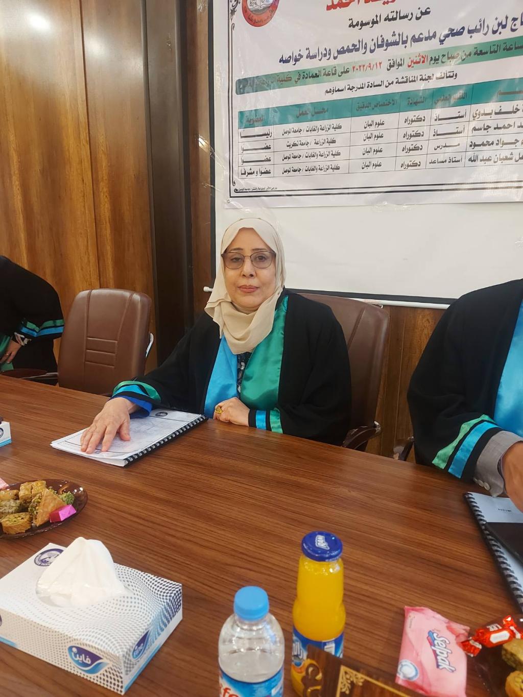 4. Asst. Prof. Dr. Khazal Shaaban Abdullah … (Member and supervisor).Then the discussion committee read the decision, which included acceptance of the thesis and awarded the student an M.Sc. degree.*****Congratulations on Obtaining Your Master’s Degree*****