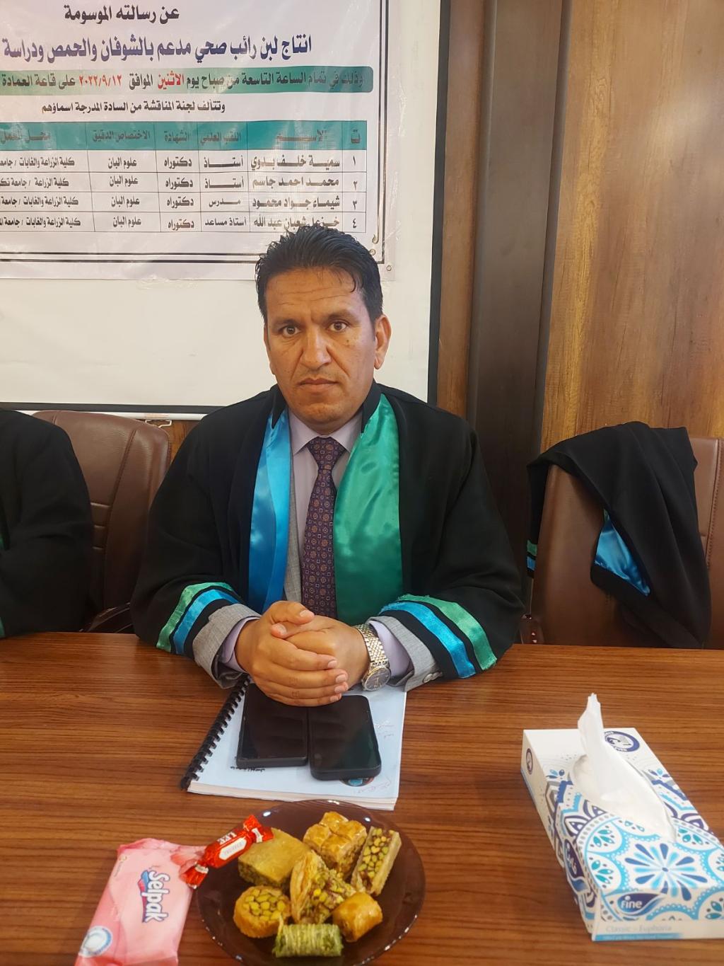 A master’s thesis was discussed in the Department of Food Sciences/ College of Agriculture and Forestry / University of Mosul for the student (Omar Owaid Ahmed) on Monday, 12-September -2022. Prof. Dr. Muhammad Younis Al-Allaf (Dean of the College) and Prof. Dr. Ali Farouk Al-Maadidi (Associate Dean for Scientific Affairs) attended part of the discussionThe discussion committee consisted of: