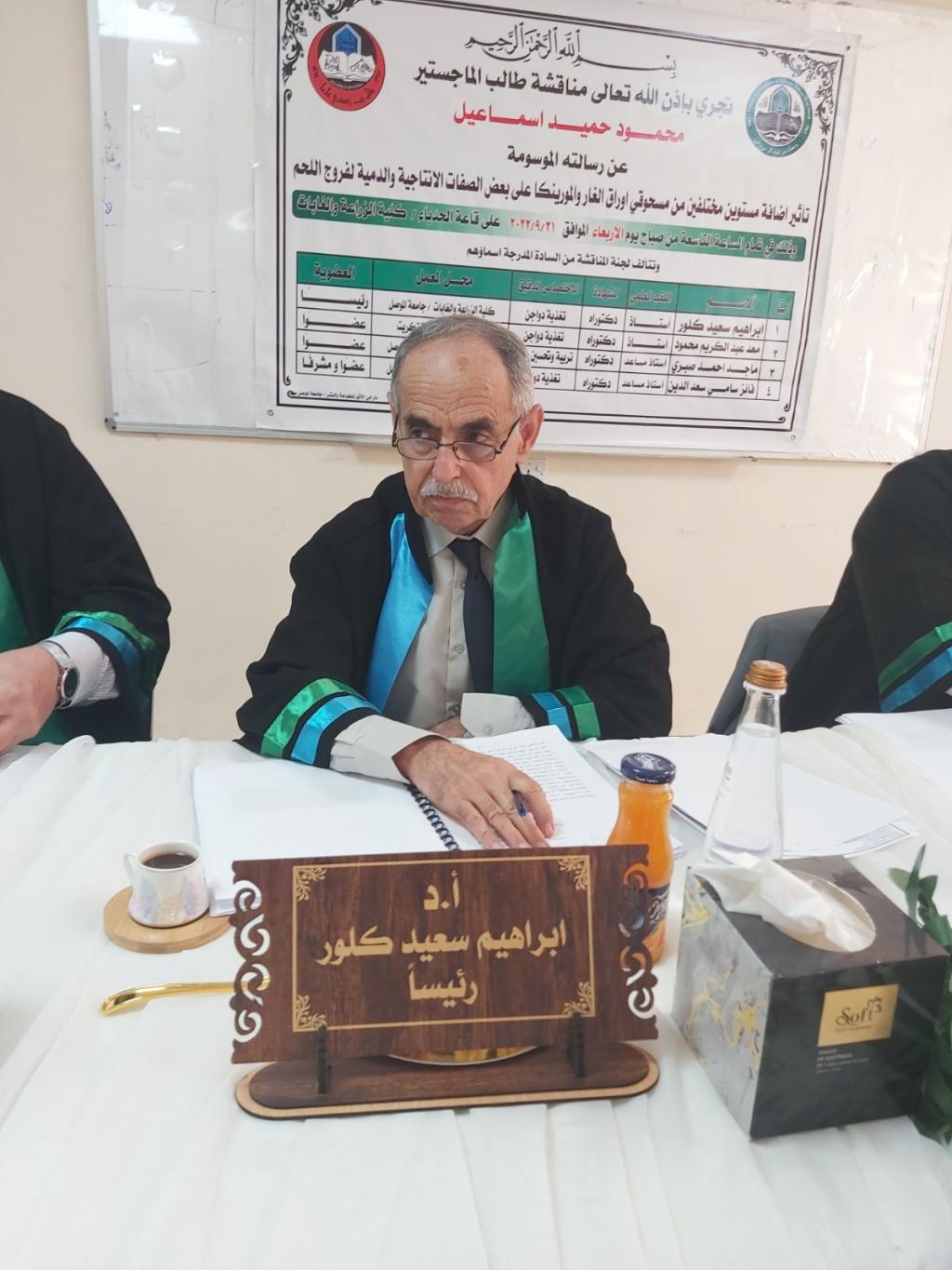 A master’s thesis was discussed in the Department of Animal Production/ College of Agriculture and Forestry / University of Mosul for the student (Mahmoud Hamid Ismail Ibrahim) on Wednesday, 21-September -2022. Prof. Dr. Muhammad Younis Al-Allaf (Dean of the College) attended part of the discussionThe discussion committee consisted of: