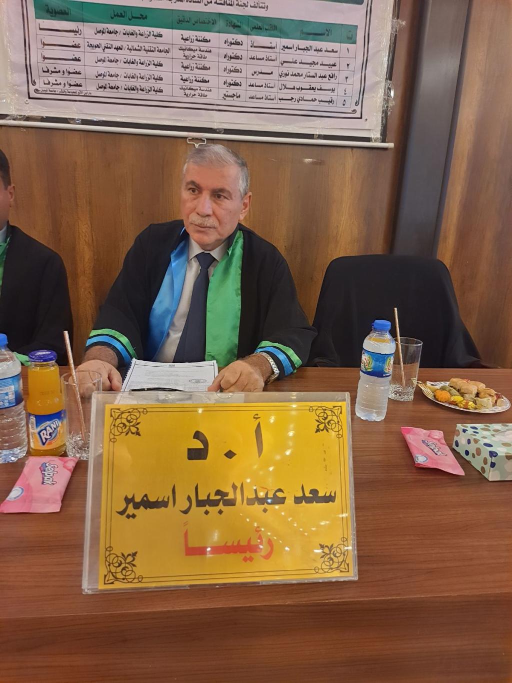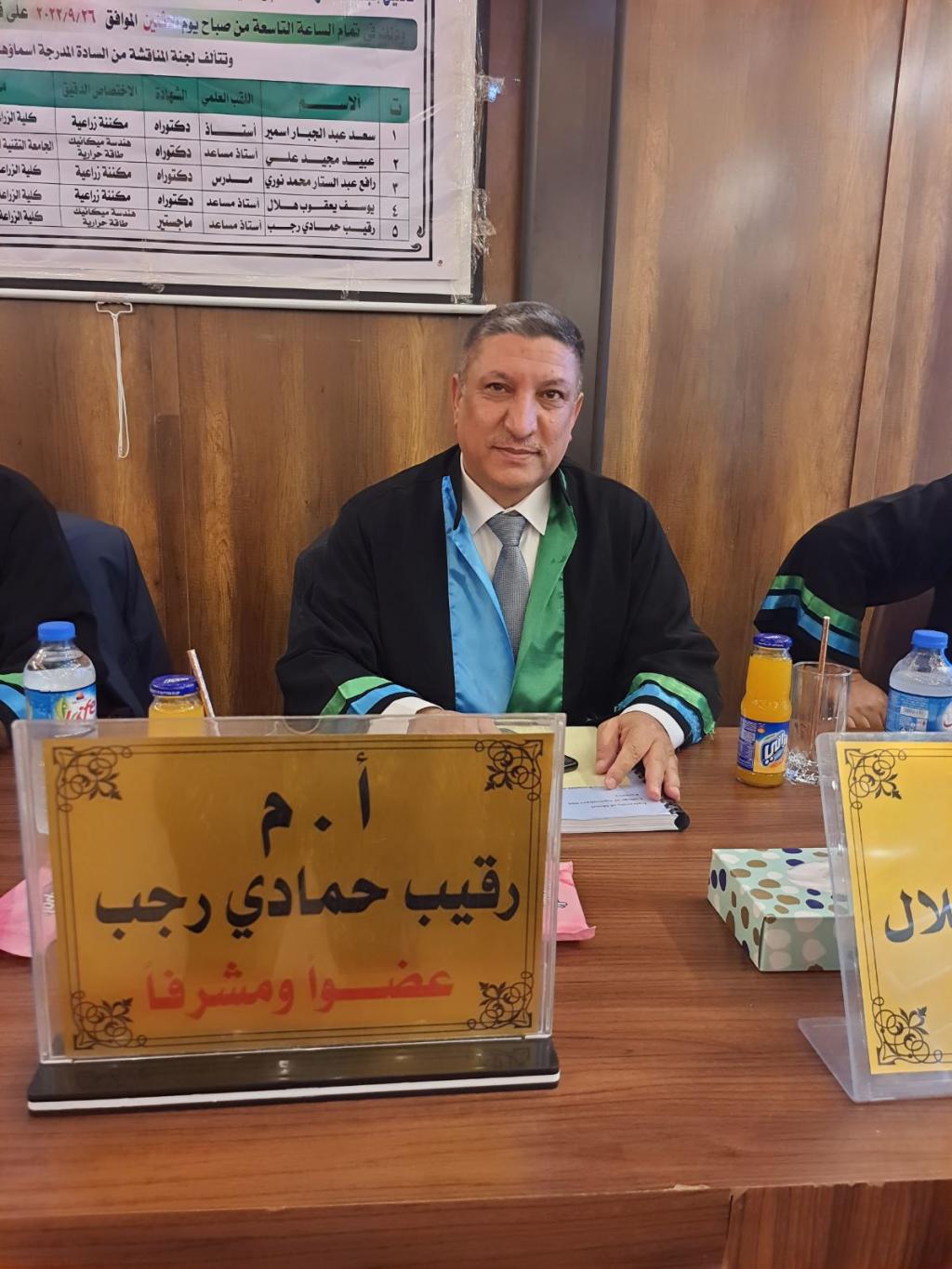 - Asst. Prof.Raqib Hammadi Rajab … (Member and supervisor).Then the discussion committee read the decision, which included acceptance of the thesis and awarded the student an M.Sc. degree.*****Congratulations on Obtaining Your Master’s Degree*****