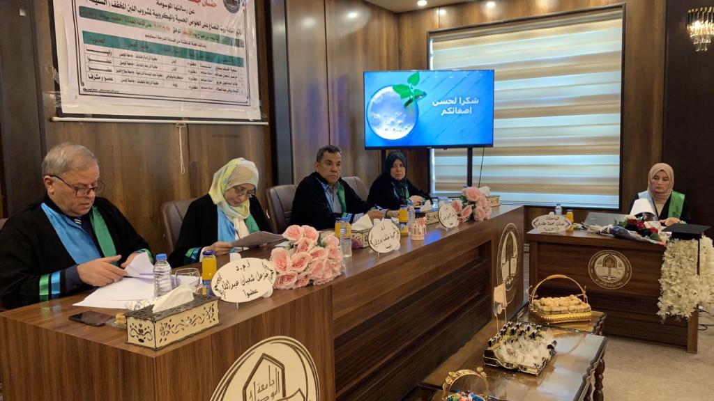 - Dr. Shaima Riyadh Abdel Salam (Member and supervisor).Then the discussion committee read the decision, which included acceptance of the thesis and awarded the student an M.Sc. degree.*****Congratulations on Obtaining Your Master’s Degree*****