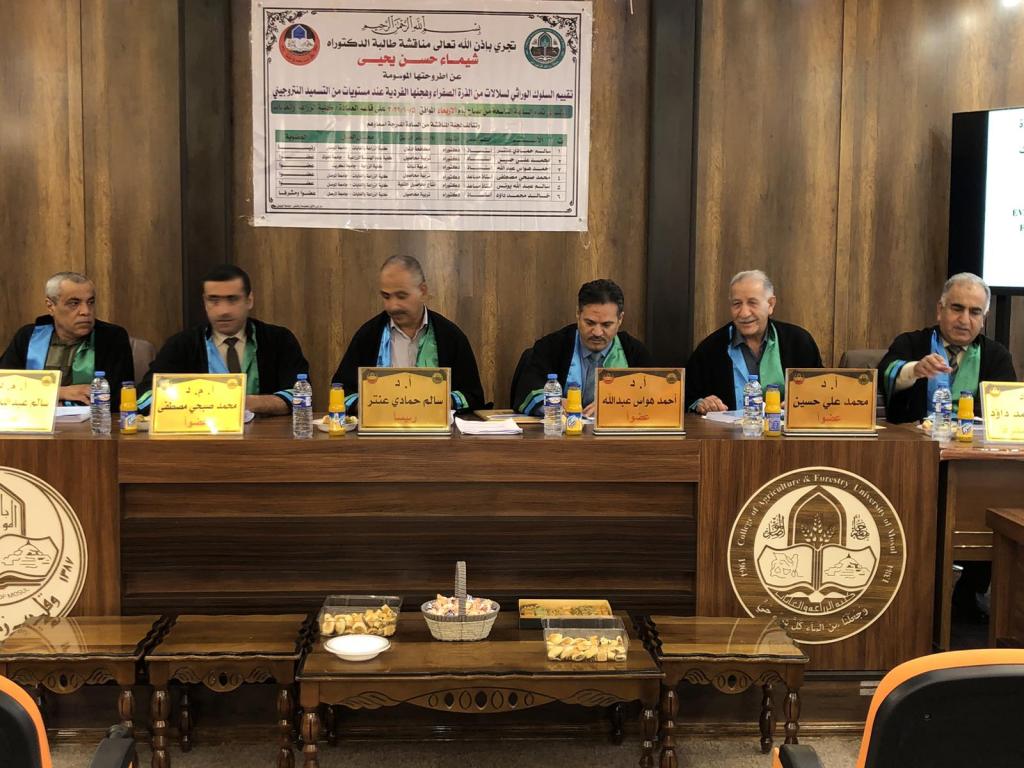 A Ph.D. thesis was discussed in the Department of Field Crops / College of Agriculture and Forestry / University of Mosul for the student (Shaimaa Hassan Yahya) on Wednesday, 5-October/2022. The title of the master’s thesis was “Evaluation of the genetic behavior of strains of yellow corn and their hybrids at levels of nitrogen fertilization. ” Prof. Dr. Muhammad Younis Al-Allaf (Dean of the College) attended part of the discussion.The discussion committee consisted of: