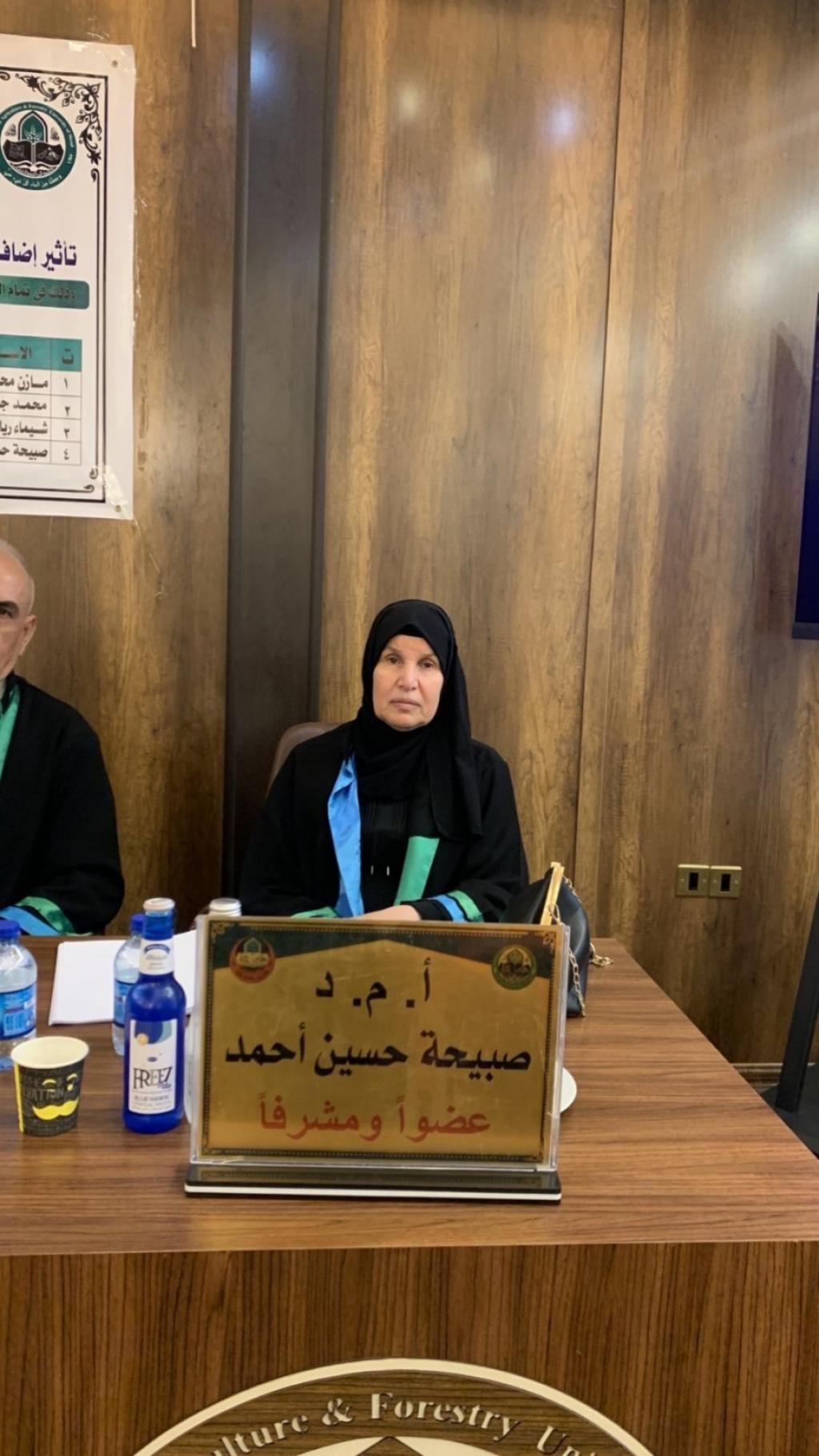 4. Dr. Sabiha Hussein Ahmed (Member and supervisor).Then the discussion committee read the decision, which included acceptance of the thesis and awarded the student an M.Sc. degree.*****Congratulations on Obtaining Your Master’s Degree*****