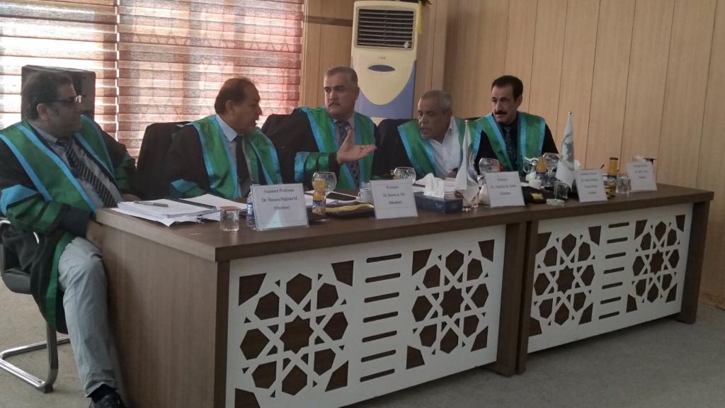 A lecturer from the College of Agriculture and Forestry participated in a Ph.D. thesis discussion committee at the University of Duhok.