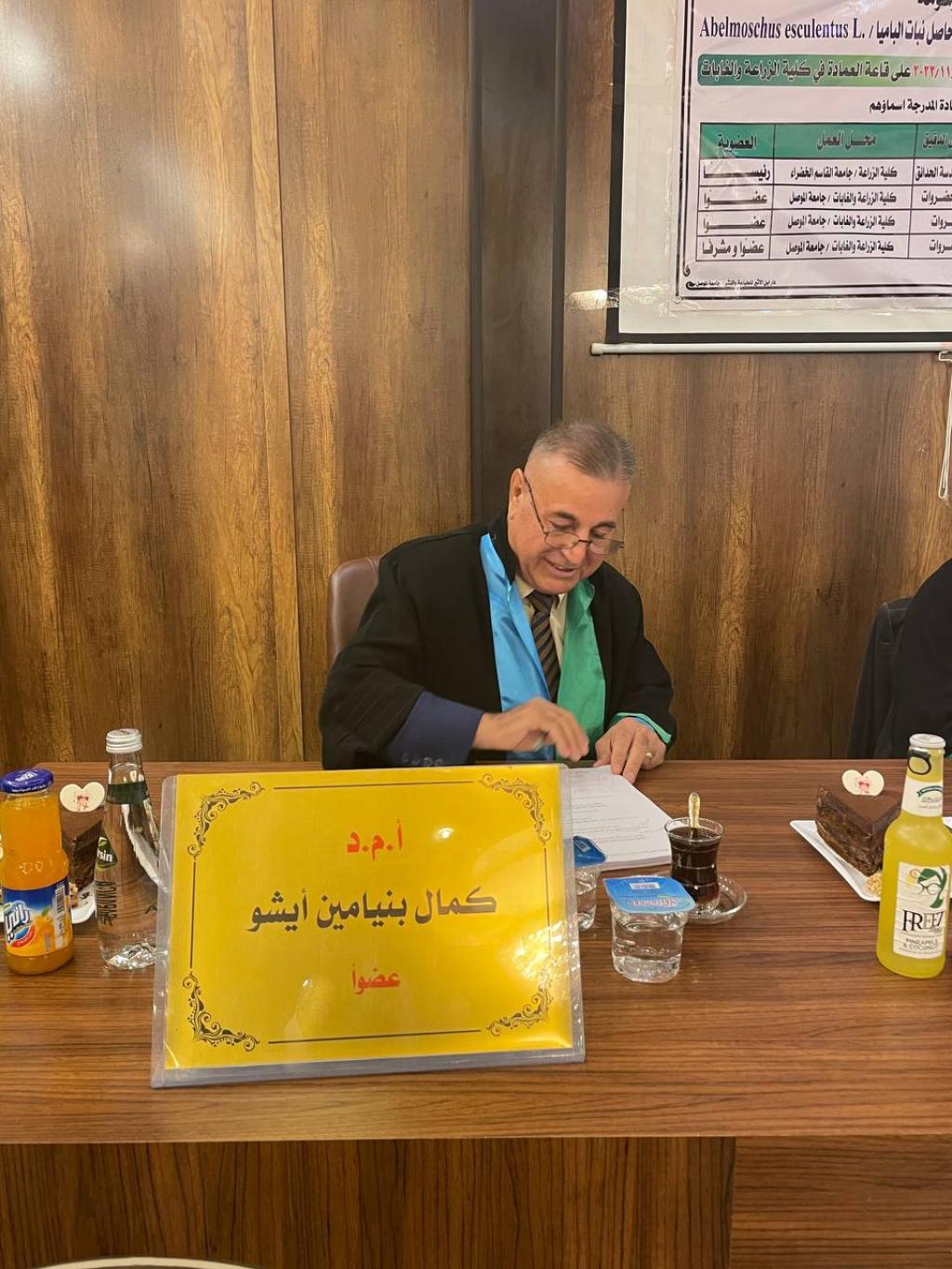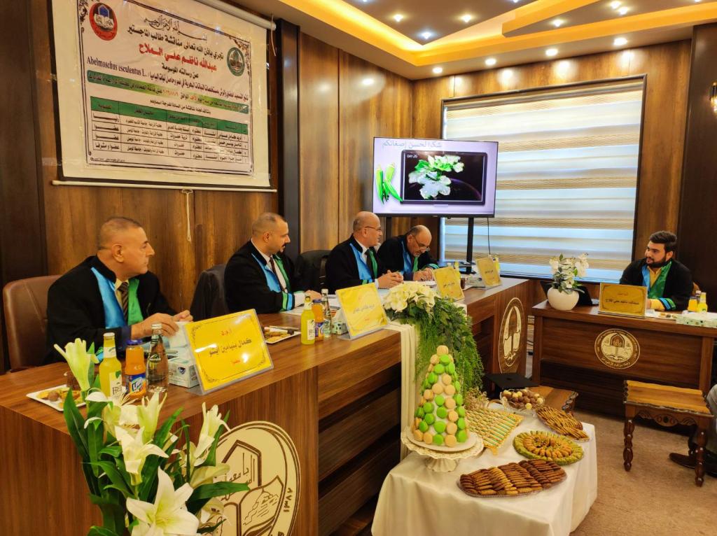 A master’s thesis was discussed in the Department of Horticulture and Landscape Architecture / College of Agriculture and Forestry / University of Mosul for the student (Abdullah Nazim Ali) on Sunday, 6-November -2022. Thesis title (the effect of organic fertilization and spraying with marine extracts on the growth and yield of the okra plant).The discussion committee consisted of:
