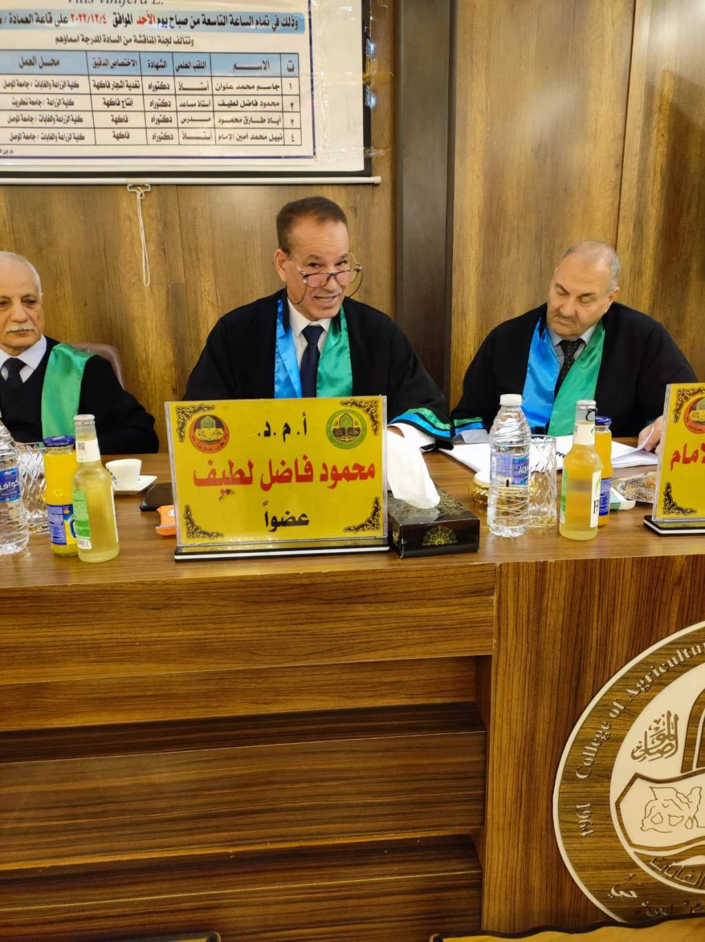 - Prof. Dr. Nabil Muhammad Amin Al-Imam (Member and supervisor).Then the discussion committee read the decision, which included acceptance of the thesis and awarded the student an M.Sc. degree.*****Congratulations on Obtaining Your Master’s Degree*****
