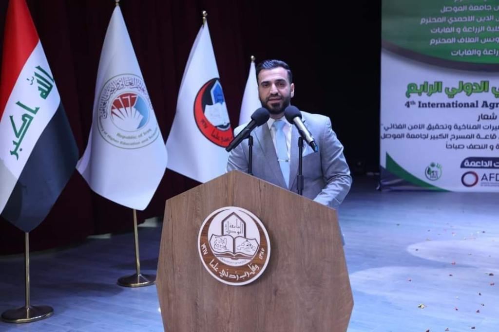 Under the direct auspices of Dr. Naeem Al-Aboudi (Minister of Higher Education and Scientific Research) and the supervision and presence of Prof. Dr. Qusay Kamal Al-Din Al-Ahmadi (President of Mosul University) and chaired by Prof. Dr. Muhammad Younis Al-Allaf (Dean of the College), the College of Agriculture and Forestry held its fourth international agricultural conference, under the slogan “Agricultural Sustainability is a Way To reduce climate change and achieve food security, today, Tuesday, January 10, 2023, at the University Theater Hall.The opening activities of the conference were attended by Prof. Dr. Mounir Salem Taha (Assistant President of the University for Scientific Affairs), Prof. Dr. Waheed Mahmoud Al-Ibrahimi (Administrative Assistant to the President of the University), the deans of the faculties, as well as several directors of government departments in the governorate, heads of departments, and many affiliates and students of the college.Three hundred thirty-one papers were submitted to the conference, of which 280 papers were accepted from various Arab and foreign countries, 123 of which were by professors and academics from the University of Mosul, while the remaining papers were by researchers from 13 countries, namely Jordan – Egypt – Syria – the United States of America – Russia – Libya – Hungary – Saudi Arabia – Nigeria – Poland – Pakistan – Netherlands – Iran.The conference event consisted of the following:1- The conference’s opening ceremony began with the national anthem playing.2- Reciting a verse from the Holy Qur’an.3- The speech of the Presidency of Mosul University, delivered by Prof. Dr. Mounir Salem Taha.4- Prof. Dr. Muhammad Younis Al-Allaf delivered the Deanship of the College of Agriculture and Forestry speech. 5- The speech of the representative of the bodies supporting the work of the conference, Mr. Ziyad Suhail Khattab, in which he spoke about agricultural projects implemented by specialized organizations in the agricultural field in Iraq.6- A documentary film was shown about the college since its establishment, embodying the stages of its development and the march of its science departments.7- An artistic show on stage for students from the Faculty of Fine Arts. The show dealt with the history and civilization of Mesopotamia over the ages and times.8- Presenting conference shields to several officials in the governorate and concerned departments, as well as retired professors from the faculty.9- The end of the celebration with an introductory scientific lecture via cyberspace given by Prof. Dr. Walid Sabry Naseer (a researcher at the American University of Arizona and a specialist in the agricultural field).10- The President of the University inaugurated a scientific and artistic exhibition and another for handicrafts during their total stay on the sidelines of the conference.The articles presented for the conference work were distributed within a curriculum that includes two-day physical and virtual sessions. The conference sessions included: (1) Plant production environment and plant protection, (2) Sustainability of food and animal resources, (3) Agricultural machinery technology, and agricultural sustainability in soil and water. (4) Extension technologies, agricultural economics, and (5) Forest environment and treatment of pollution and climate change. It is indicated that the submitted articles will be published in the IOP journal indexed within the Scopus repository.