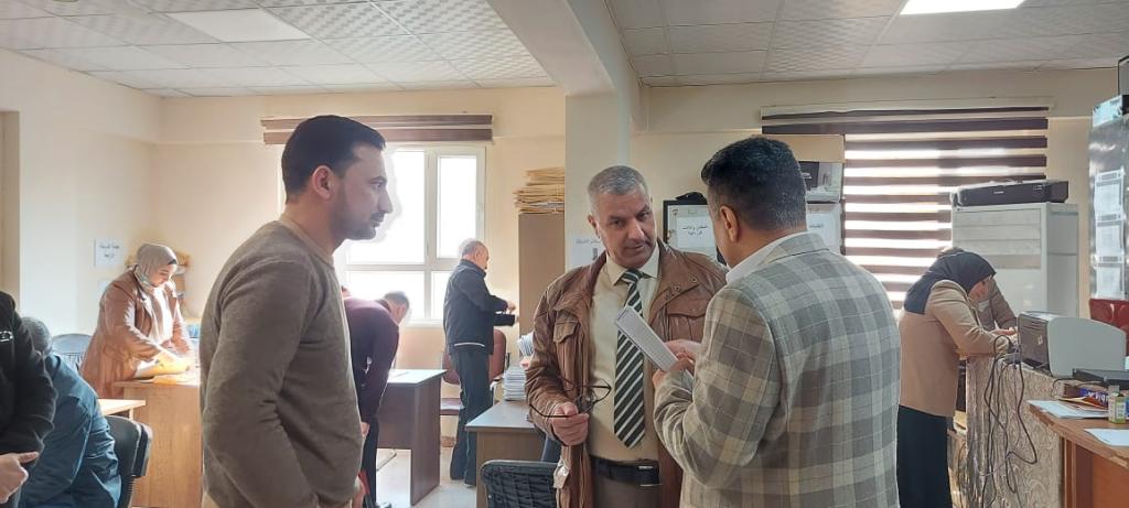 Today, Thursday, January 26, Prof. Dr. Muhammad Younis Al-Allaf (Dean of the College) visited the examination committee in our college. Prof. Dr. Muhammad Sobhi (Chairman of the Examination Committee) gave the Dean a detailed explanation of the work of the examination committee by preparing all the requirements for the success of the exams in the college. The Dean called on the committee members to cooperate to overcome all difficulties to ensure the success of conducting the exams in a way that raises the college’s reputation. Al-Allaf praised all their efforts for the success of the scientific and educational process, especially the preparation of the committee administratively and scientifically before starting the exams in terms of practices for supplies.