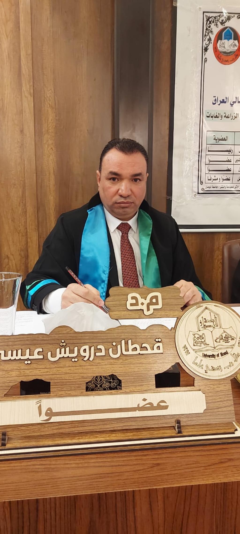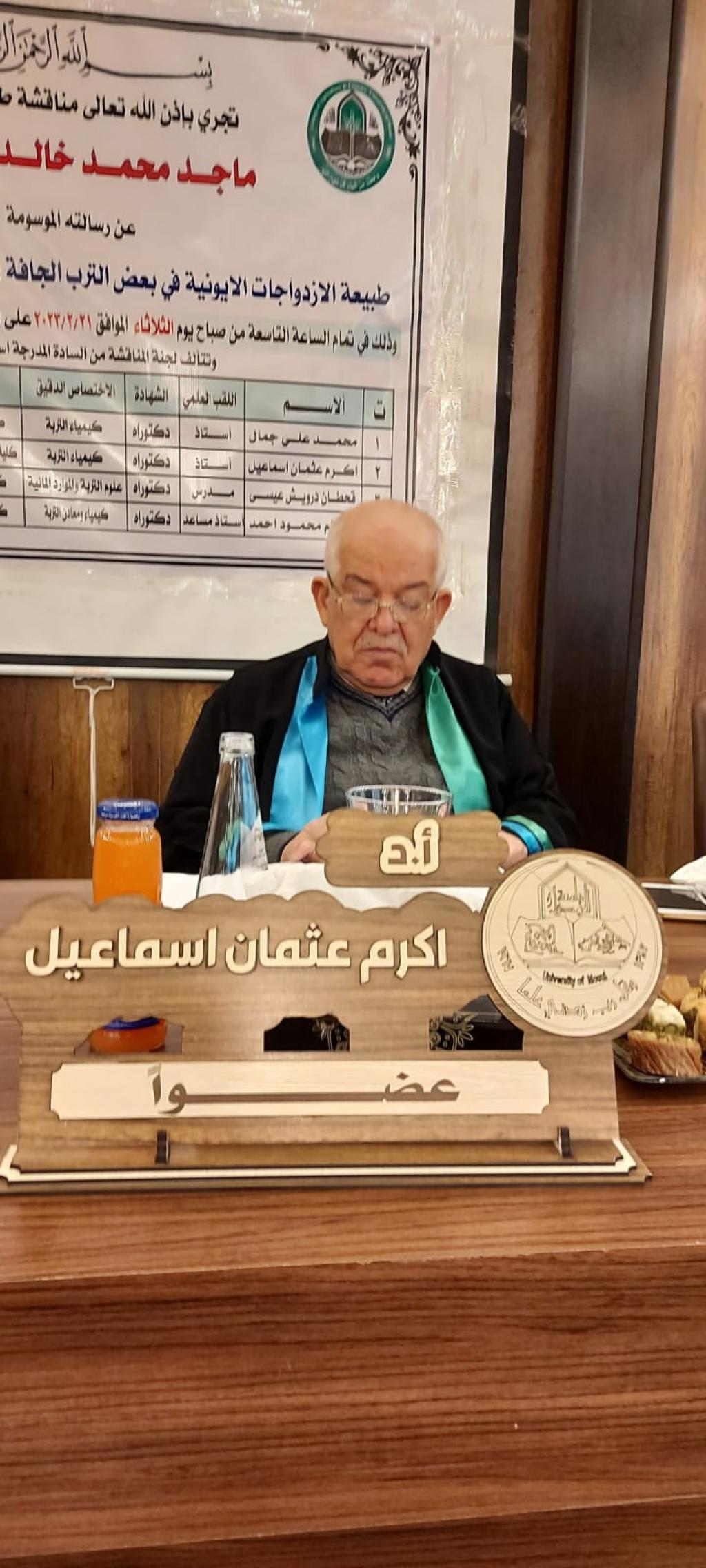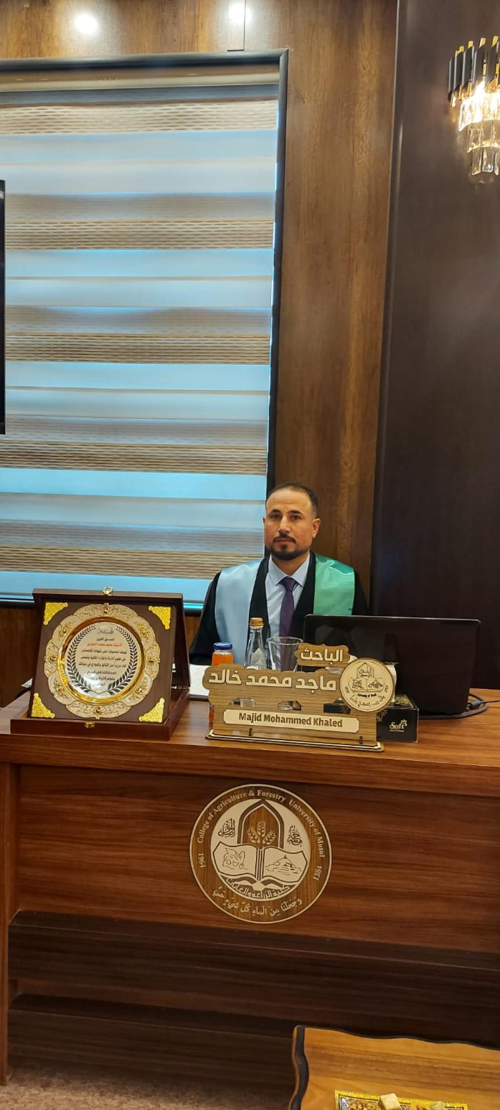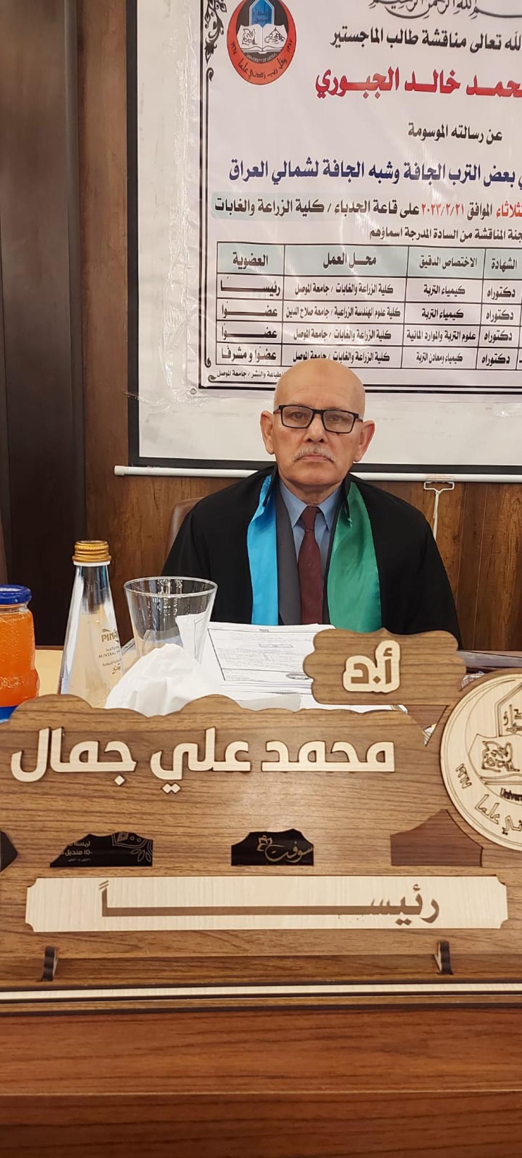 A master’s thesis was discussed in the Department of Soil Sciences and Water Resources / College of Agriculture and Forestry / University of Mosul for the student (Majed Muhammad Khaled Al-Jubouri) on Tuesday, 21 February -2023. Thesis title (The nature of ionic duality in some dry and semi-arid soils of northern Iraq). Prof. Dr. Muhammad Younis Al-Allaf (Dean of the College) attended a part of the discussion.Many scientific findings are available in the thesis.The discussion committee consisted of: