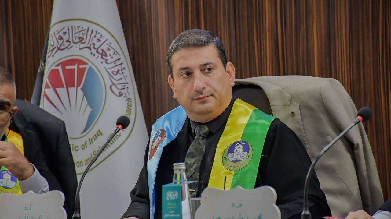On Monday, September 1, Prof. Dr. Ali Farouk Al-Maadidi (Dean of the College) chaired the defence of a master’s thesis at the College of Environmental Sciences for student Ruqayya Badr Muhammad Hussein. The thesis was titled “Geoenvironmental Assessment and Health Risks of Heavy Metals in the Surface Soil of Mosul City.”
