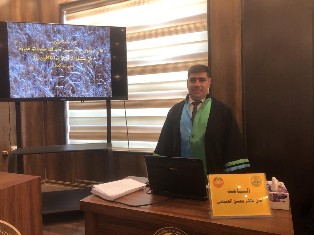 A Ph.D. thesis was discussed in the Department of Field Crops / College of Agriculture and Forestry / University of Mosul for the student (Ayman Taher Mohsen) on Sunday, 4/September/2022. Prof. Dr. Muhammad Younis Al-Allaf (Dean of the College) attended part of the discussion.The discussion committee consisted of: