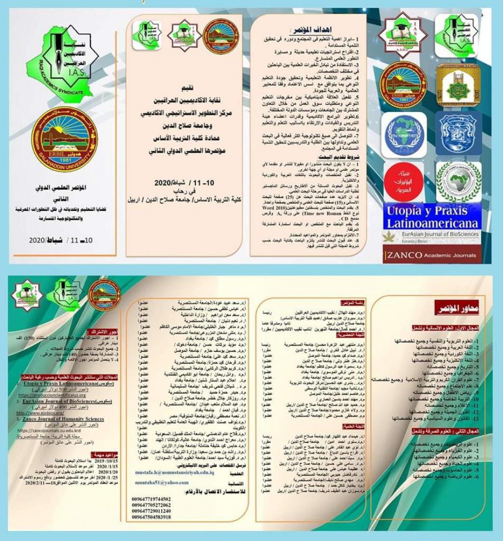 Asst. Prof. Dr. Hussein Yousif Hazim/ Asst. of dean for Scientific Affairs of our college chaired the session part of History in the Second International Conference of Iraqi Academic Association-strategic development center and University of Salahaldin/ Deanship of Basic Education on 10-11/February/ 2020. The conference was held at university Salahaldin/ College of Basic Education. Asst. Prof. Dr. Hussein Yousif Hazim received a certificate of Participation and a shield of honor as an appreciation of his efforts as a member of the scientific committee of the conference as well as chairing the session of history inside the conference.
