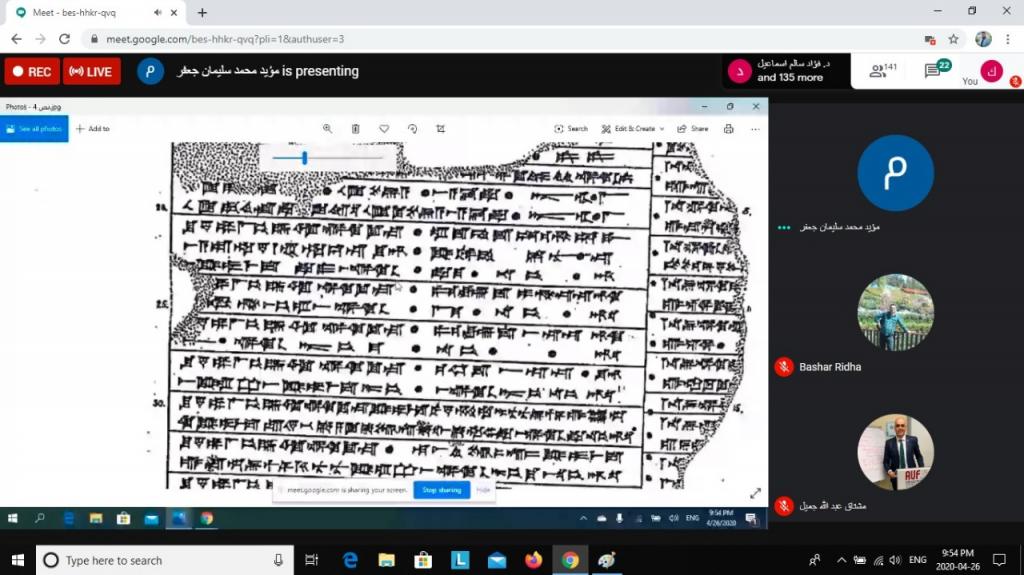 Under the patronage of Prof. Dr. Qusai Alahmadee/ president of University of Mosul and the supervision of Asst. Prof. Dr. Yasameen Abdulkareem/ Dean of the college of archaeology. And in cooperation with college of education for girls represented by Prof. Dr. Dumeeyaa Alzaidee and college of pharmaceuticals science represented by Asst. Prof. Dr. Zeena Abdulminam. College of Archeology held its first online symposium titled (Medical Herbs between past and now) on Sunday 26th of April 2020 at 9 p.m. a number of academic staff of the three colleges participated in which the symposium tackled three main topics as follows:
