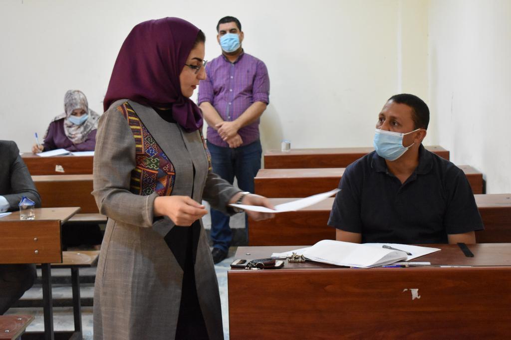 The competitive exam to the postgraduation applicant student was done on Tuesday morning 20/10/2020 for the academic year 2020/2021 (master – doctorate ) for the scientific department in the college , Under the supervision and attendance of the dean of the archeology college assistant professor Dr. Yasmin Abdulkareem Mohammed Ali and the assistant dean for the academic affairs assistant professor Dr. Hussain Yousif Najm the , the assistant dean for the administrative affairs professor Dr. Moayad Mohammed Suliman and the official of the post-graduation section .And under the supervision of the heads of the scientific departments where the Administrative Committees in the departments organized the study halls and divided the student on it each one according to his specialty. while the dean visited the halls during the exams .