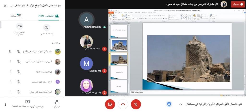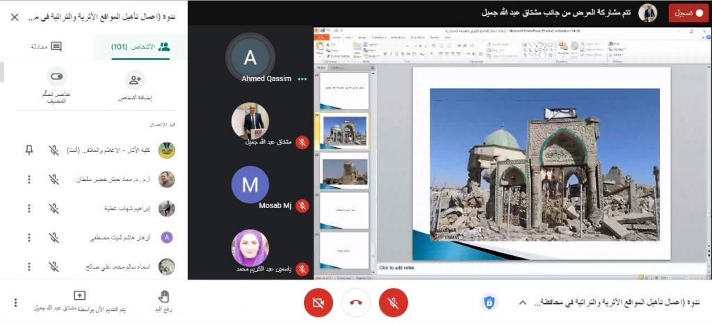 by Prof.Dr Ahmed Qassem Al-Jumaa,focused on the most important factors and ways to rehabilitate Al-Nuri Alkabeer Mosque and Minaret Al-Hadba. The second lecture was presented by Mr. Musab Muhammad Jassim, in which he explained the most important archaeological and heritage projects that Nineveh and Heritage Inspectorate is working on.