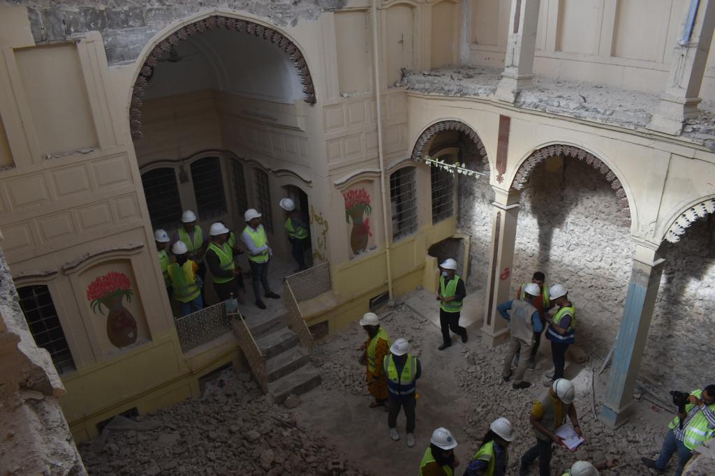 Today, a dialogue tour was held with the Dean of the College of Archeology, Prof. Dr. Yasmine Abdel Karim, and the Director of the Mosul Studies Center, Dr. Maysoon Al-Abayji, with a group of Mosul students and researchers in the old region, with the support of the European Union, UNESCO, to introduce the heritage areas in the city of Mosul and how to build the houses and The materials used in the construction of heritage buildings.