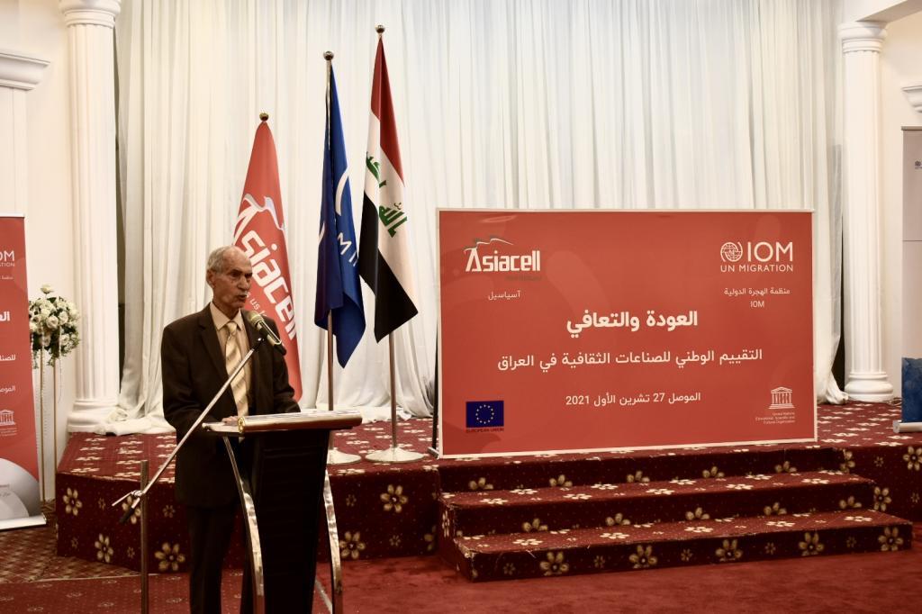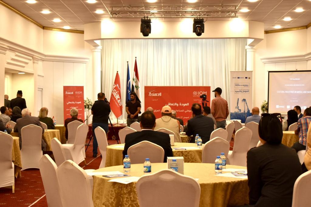 A group of professors from the Faculty of Archeology participated in a dialogue session about launching a national study of cultural industries in Mosul and Basra, in cooperation with the International Organization for Migration and Asiacell Company, on the Engineers Syndicate hall. It is part of the UNESCO-run Revitalization Program for the old cities of Mosul.Supporting small projects for workers in the field of handicrafts and preserving Iraqi culture.