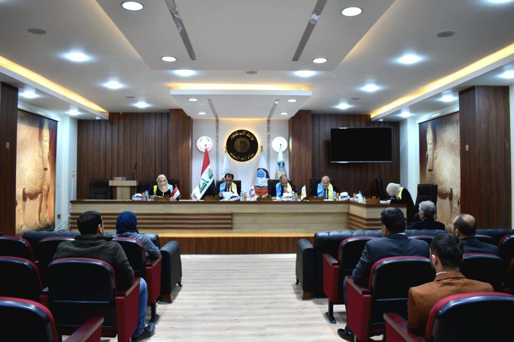 The master’s thesis was entitled:(The issue of being caught red handed in the ancient Iraqi laws)was discussed by the researcher Istabraq Amer Dhanoun Safawi, Department of Archeology on Wednesday, 3/1/2023 at 9 a.mAt the hall of Dr. Behnam Abu Al-Souf.The thesis dealt with the subject of The issue of being caught red handed in the ancient Iraqi lawsThrough the information contained in the legal materials that relied on this caseIn convicting the perpetrators of crimes in the past and arresting them red-handed, the study showedThe maturity of the legal thought of the ancient Iraqis, as the study indicated the great similarity in the foundations and proceduresBetween the old Iraqi laws and the statutory laws at the present time, as indicated by the studyTo some cases that showed similarity in the case of the crime witnessed in the past with what is found in Islamic law.The viva committee consisted of: