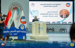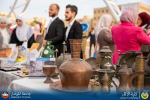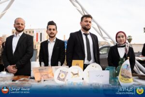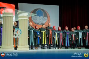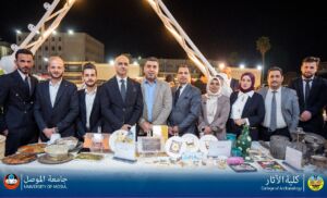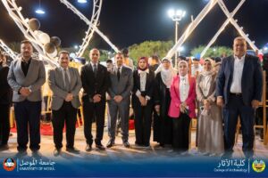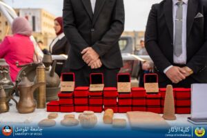 The College of Archaeology Participates in the Central Celebration of the 58th Anniversary of the Founding of the University of Mosul. The celebration took place on the evening of Sunday, April 13, 2025, at 6:00 PM, at our beloved university. The event featured the participation of the college’s deanship, in the presence of the dean, Professor Yasmin Abdul Karim Muhammad Ali. The event was also attended by the dean’s assistants for academic and administrative affairs, members of the committees participating in the celebration, and a select group of college staff and students. The college’s contributions to the celebration included cuneiform seals, artifacts, and a number of heritage vessels, as well as traditional dishes famous in the city of Mosul. May our university be well every year, a great academic institution that has graduated generations of talented individuals.