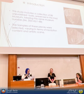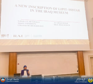 As part of international participation and building bridges of scientific communication between international universities and institutes, Professor Dr. Yasmin Abdul Karim Muhammad Ali, Dean of the College of Archaeology, participated in the 70th International Assyriology Conference which was held in Prague, the capital of Czech Republic from July 7 to 11, 2025. Dr. Yasmin presented her research entitled “Unpublished Seal Imprints (Bula) from the Iraqi Museum.” Associate Professor Dr. Nawalah Ahmed Mahmoud also participated in her research entitled “A New Reading of the Law of Lipit-Ishtar from the Iraqi Museum.”
