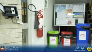 In light of the directives of the Ministry of Higher Education and Scientific Research, the College of Archaeology, under the direct supervision of Professor Dr. Yasmin Abdul Karim Muhammad Ali, Dean of the College, seeks to enhance the data of the (S1) indicator in the Green Metric Global Ranking of Sustainable Universities, as part of the University of Mosul’s vision for excellence in academic and environmental sustainability. This initiative embodies the College of Archaeology’s commitment to achieving the third goal related to good health and well-being and the eleventh goal of the Sustainable Development Goals related to sustainable cities and communities, and emphasizes the compatibility of its academic environment with safety and prevention requirements.