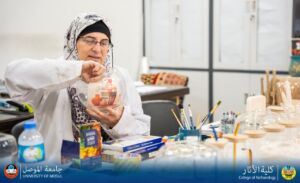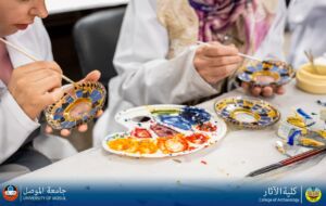 Under the supervision and support of the Dean of the College of Archaeology, Professor Dr. Yasmine Abdel Karim Muhammad Ali, the Student Activities Division held a training course on painting on various glass materials from Sunday, August 24th to August 28th, in the Creativity and Excellence Hall at the college. Over the five days, the course included a theoretical lecture introducing the materials to be used in the course, as well as the glass pieces that can be colored. It also included an introduction to colors and chemical solvents for dyes. Following the introductory lecture, participants were introduced to the design of the drawings, stencils, and brushes used to make the stencils. Approximately 21 participants from both teaching and professional staff attended the course. The workshop was moderated by visual arts researcher Faten Anwar and assistant lecturer Nour Faisal.