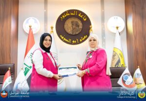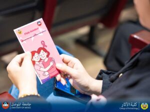 The College of Archaeology at the University of Mosul, represented by the Women’s Affairs Committee and the Cultural Unit of the Student Affairs Division, in cooperation with the College of Nursing, held a workshop entitled “Breast Self-Examination and Early Detection of Cancer” on Tuesday, October 28, 2025, in Dr. Behnam Abu Al-Souf Hall. The workshop was presented by Assistant Professor Yamama Zuhair Abdul Karim and Assistant Lecturer Rana Mohammed Jassim. The workshop addressed the importance of early detection of breast cancer and self-examination. It also aimed to raise health awareness among the academic community regarding the importance of early detection of breast cancer and methods of prevention.