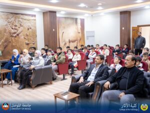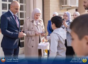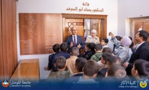 The College of Archaeology welcomed a scientific visit from students of Al-Baqi’ Elementary School for Boys, along with several members of the school staff, on Tuesday, December 25, 2025. They were received by Professor Dr. Yasmin Abdul Karim Muhammad Ali, Dean of the College, Dr. Yasser Jaber, Assistant Dean for Scientific Affairs, and a number of faculty members. The scientific visit aimed to foster intellectual and cultural exchange between educational institutions within the Ministries of Education and Higher Education, with the goal of introducing students to the importance and value of antiquities, methods of preservation, and the art of writing using cuneiform script.
