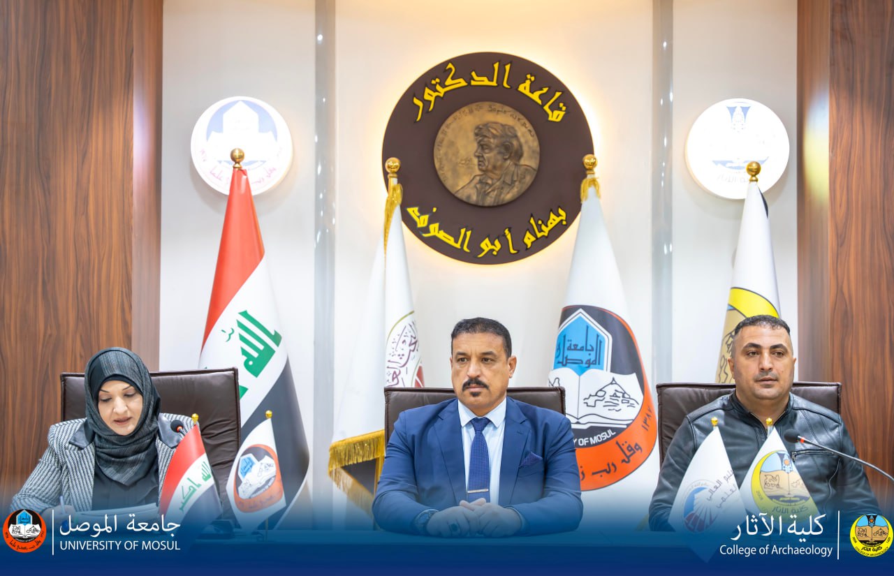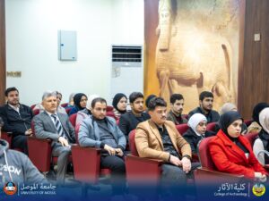 As part of the activities of the College of Archaeology, under the supervision and follow-up of the Dean of the College, Professor Dr. Yasmin Abdul Karim Muhammad Ali, the College of Archaeology, through its University Psychological Counseling Division, in coordination with the College’s Media and Government Communication Division, and in cooperation with the Presidency of the University of Mosul, Department of Studies and Planning, Sustainable Development Unit, and the Nineveh Anti-Narcotics Office, organized a workshop entitled “With Science We Eliminate Drugs.” The workshop was presented by Professor Falah Mahdi, Director of Media for the Nineveh Anti-Narcotics Office, on Monday, December 15, 2025. The workshop addressed the dangers of drugs and their effects on the individual and society, and highlighted methods of combating and reducing their spread, by explaining prevention and treatment mechanisms and promoting community awareness of the dangers of drug use and trafficking. The workshop also addressed the types of drugs prevalent and methods of their distribution, in addition to outlining the health, psychological, and social harms caused by addiction. The workshop also touched upon the most important laws and penalties related to combating drugs in Iraq, emphasizing the importance of cooperation between security institutions and the community to reduce this scourge and protect young people from its dangers. This workshop comes within the University of Mosul’s efforts to invest its scientific and research capabilities to support the community in confronting the danger of drugs, and to promote a conscious university environment capable of facing contemporary behavioral and social challenges.