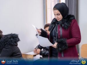 The first semester final exams began this morning, Sunday, December 28, 2025, at the College of Archaeology. The exams were overseen by the Dean of the College, Professor Dr. Yasmin Abdulkarim Mohammed Ali, accompanied by the Vice Deans for Scientific, Administrative, and Financial Affairs. The exams, which included the Departments of Archaeology and Ancient Iraqi Languages, proceeded smoothly and efficiently, adhering to all approved examination regulations and procedures. This ensured a suitable environment for students to take their exams with ease and confidence.