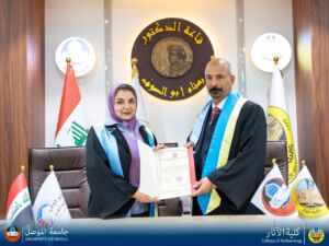 A master’s thesis entitled “Medical Tourism and its Uses: Past and Present,” submitted by student Adnan Sarhan Mustafa, was discussed in the Department of Archaeology, College of Archaeology, on Monday, January 12, 2026. The thesis was supervised by Professor Dr. Yasmin Abdulkarim Mohammed Ali (first supervisor) and Assistant Professor Dr. Jirjis Omair Abbas (second supervisor).