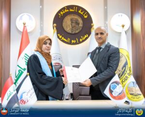 A master’s thesis entitled “Votive Inscription Forms in the Sumerian Era: A Linguistic Study,” submitted by student Warqa’a Ayad Asaad, was discussed in the Department of Archaeology, College of Archaeology, on Wednesday, January 14, 2026, under the supervision of Assistant Professor Dr. Khalid Haider Othman.