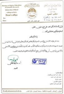 In an atmosphere filled with warmth and harmony, the handover ceremony of the Deanship of the College of Arts at the University of Mosul took place on Monday, April 21, 2025.