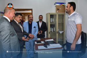 The esteemed Dean of the College of Arts, Prof. Dr. Hatim Fahd Hanno, along with his scientific and administrative deputies, conducted an inspection tour of the departments, divisions, and units of the College of Arts.