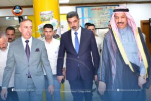 On Tuesday, April 29, 2025, the Dean of the College of Arts, Professor Dr. Hatim Fahd Al-Tai, received the Emirs of the Emirate of Tayy—Emir Sabah Ghazi Al-Hunaysh and Emir Sadda’ Ghazi Al-Hunaysh—along with their accompanying delegation.