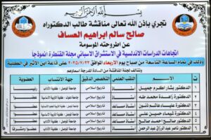 The study, presented by student Salih Salim Ibrahim, examines orientalist studies published in Al-Qantara Journal, which serves as an extension of the Spanish journal Al-Andalus, founded in 1933 and specializing in Arab and Islamic studies.