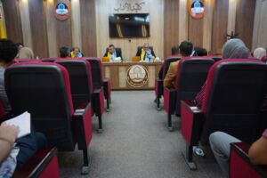 On Thursday, September 11, 2025, the Department of Translation at the College of Arts held a master’s thesis defense for a thesis titled “Correcting the Arabic Translation of English Journalistic Texts by ChatGPT.” The defense was attended by the Dean of the College, Professor Dr. Hatem Fahd Al-Tai, the Head of the Department, Dr. Hala Khalid Najm, and several faculty members.