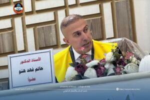 In a scholarly and academic atmosphere, Professor Dr. Hatem Fahd Hano Al-Tai, Dean of the College of Arts – University of Mosul, participated in the defense of the PhD thesis presented by student Saad Ahmed Abdullah at Tikrit University.