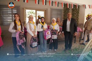 A college delegation visited the Abad Al-Rahman Girls’ School, where they distributed school bags and stationery to orphaned and disadvantaged female students in an atmosphere filled with warmth and joy.