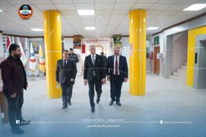 The Dean of the College of Arts, Professor Dr. Hatem Fahd Hano Al-Taie, accompanied by the Associate Dean for Administrative Affairs, Dr. Safwan Nadhim Dawoud, conducted an inspection tour of the administrative divisions and units within the College.