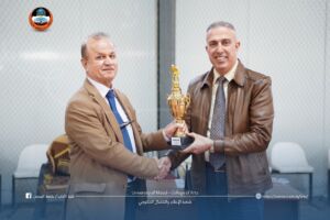 The final match of the Futsal Championship for the College of Arts departments concluded this morning, Monday, November 24, 2025, where the Department of Arabic Language defeated the Department of Turkish Language with a score of 3-1 following an excellent competitive display. The event was honored by the presence of the Dean of the College of Arts, Professor Dr. Hatem Fahd Hano Al-Tai, and the Administrative Assistant, Dr. Safwan Nadhim, who participated in the crowning ceremony, distributing gifts and presenting the first and second-place trophies in a festive sports atmosphere.