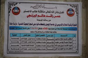 The defense was attended by the Dean of the College, Professor Dr. Hatem Fahd Al-Taie, the Head of the Department, Dr. Wasan Sami Saadallah, and a number of the College’s faculty members.