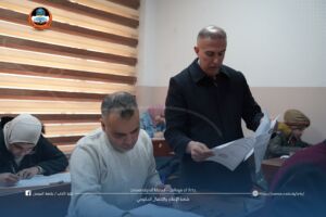 The Dean of the Faculty of Arts, Professor Dr. Hatem Fahd Hano Al-Tai, conducted an inspection tour to monitor the progress of postgraduate examinations across various departments. The visit aimed to ensure full compliance with examination regulations and the provision of an ideal academic environment for students.
